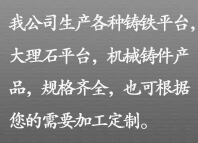 全意鑄鐵平臺(tái)平板廠家專注生產(chǎn)T型槽鑄鐵平臺(tái),大理石氣浮實(shí)驗(yàn)石平臺(tái),han接鑄鐵平臺(tái),裝配鑄鐵平臺(tái),檢測測量大理石平臺(tái),試驗(yàn)鑄鐵平臺(tái),測量大理石平板,T型槽平臺(tái),電機(jī)試驗(yàn)平臺(tái),三坐標(biāo)測量平臺(tái)等鑄鐵平板來圖加工定做業(yè)務(wù),以合理的價(jià)格,專注的技術(shù)服務(wù)于國內(nèi)外客戶,互利合作,共同發(fā)展!公司位于河北交河開發(fā)區(qū),京滬鐵路、104國道、106國道、京福高速公路橫穿而過,與我國的兩大直轄市北京、天津近在咫尺,地理位置優(yōu)越,交通非常便利。我公司本著以誠納客”“嚴(yán)把質(zhì)量關(guān)”“價(jià)格優(yōu)惠”“用戶至上的原則,幾十年兢兢業(yè)業(yè),受到用戶的一致好評!